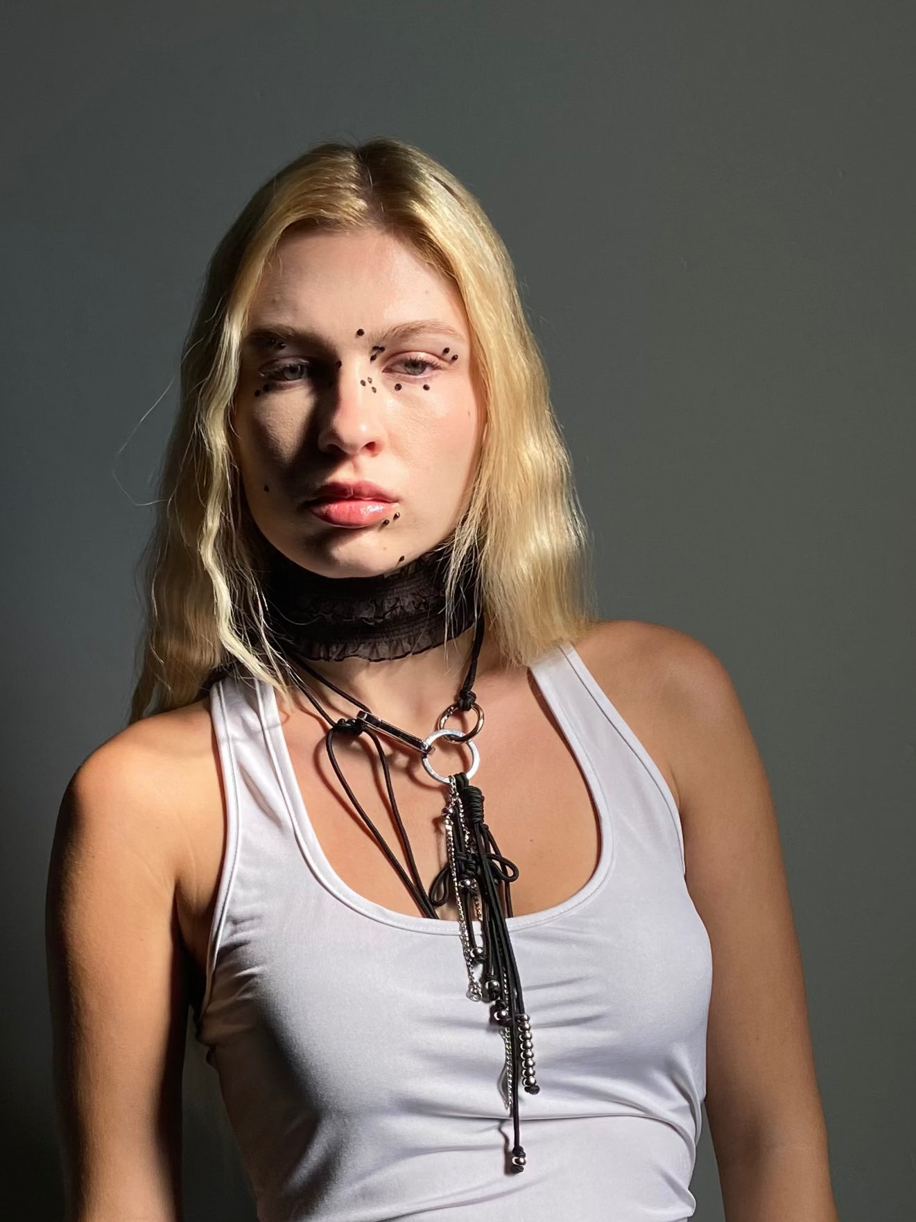 Cute BB choker is a lightweight, adjustable choker crafted from soft lace, parakord, and stainless steel accents. Designed to adapt — wear it as a neckpiece, a headband, or even on the leg styled looks. One size fits all.