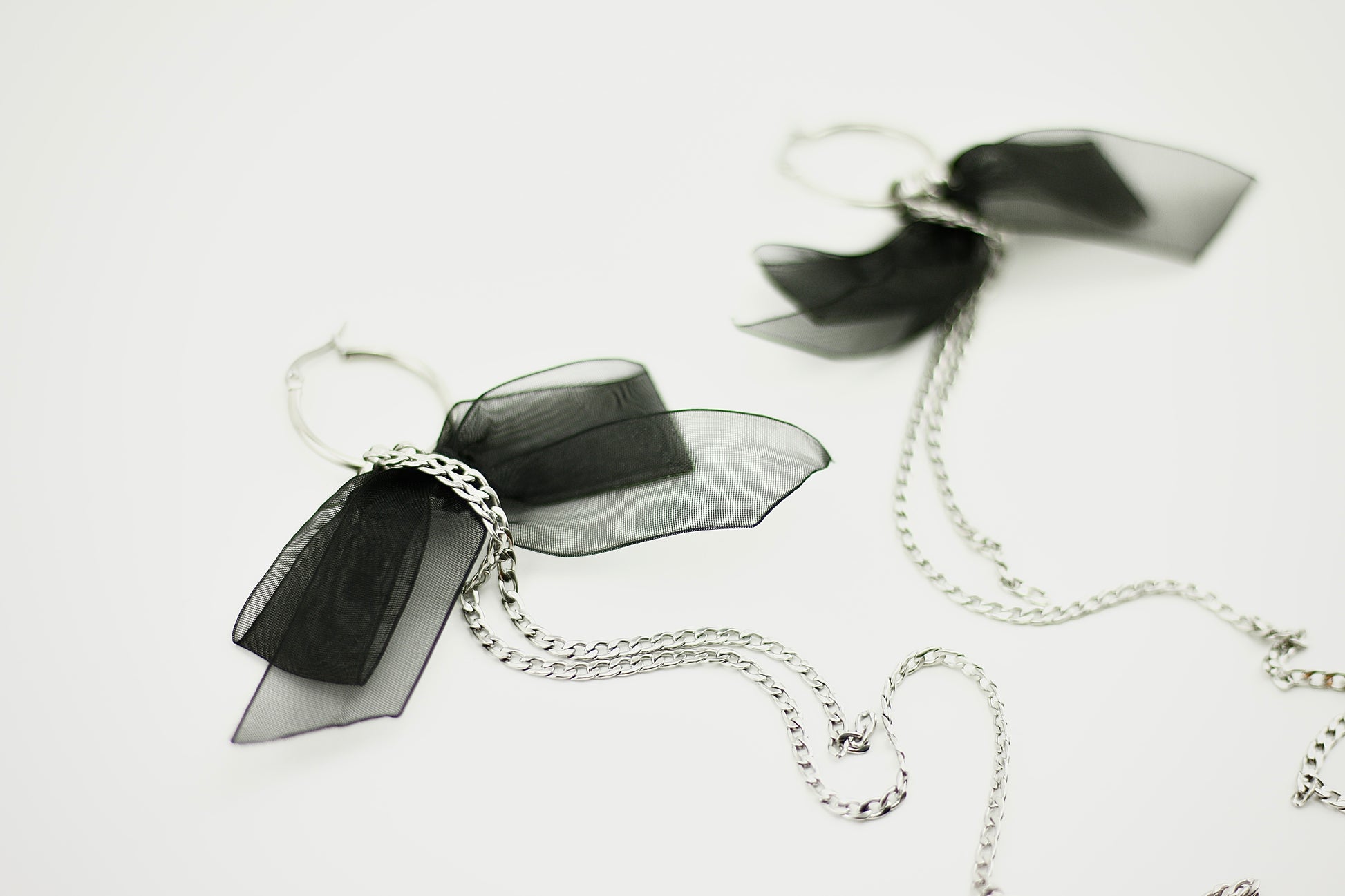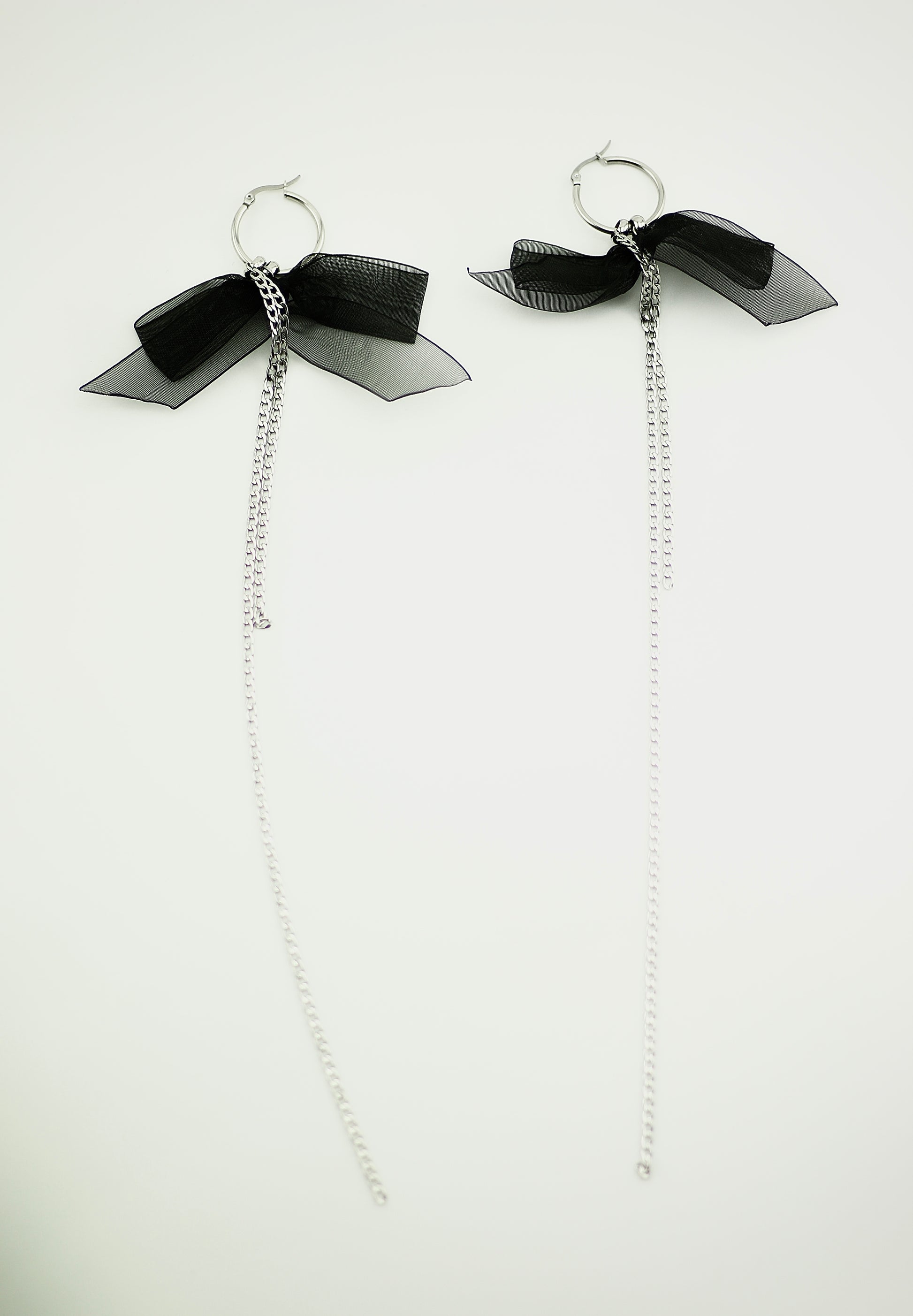 Playful yet edgy — these earrings mix soft black lace with bold stainless steel chains. A unique balance of cute and daring, they add an unexpected extra touch to any style. Lightweight, eye-catching, and made to stand out.